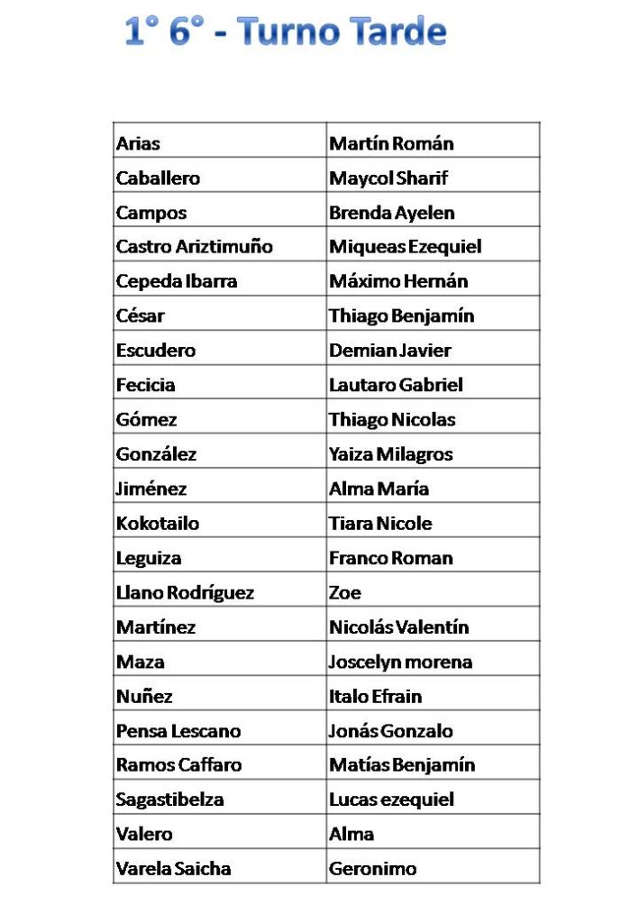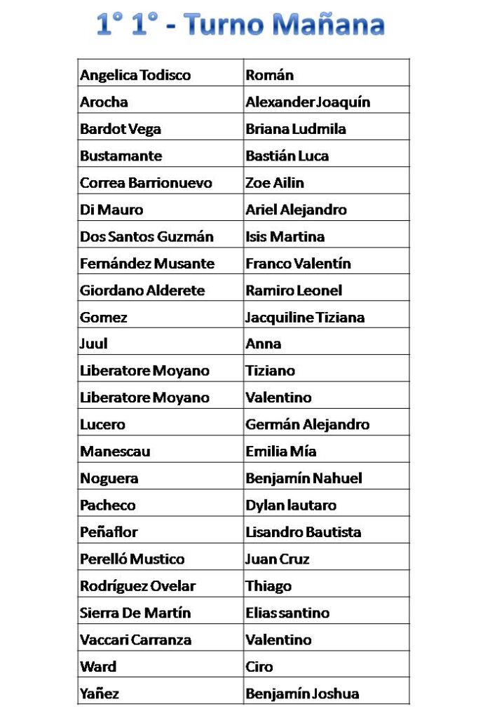 Listados ingresantes a 1º año ciclo lectivo 2026